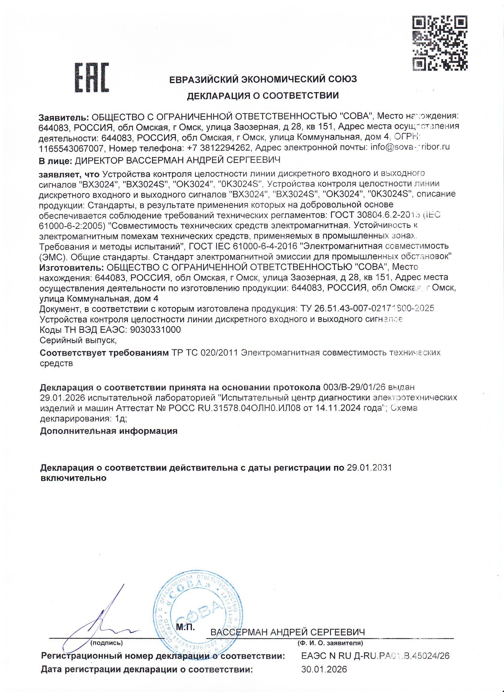 Контроль линии связи на ОБРЫВ и КОРОТКОЕ ЗАМЫКАНИЕ
